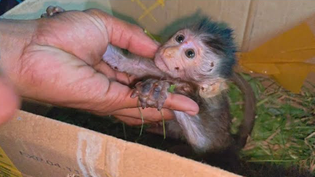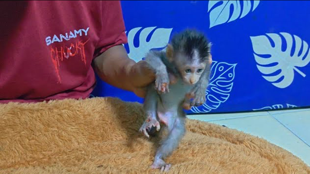 The newborn monkey lay curled against a soft cloth, eyes barely open, chest rising in small, fragile breaths. He was only a few days old—too…
