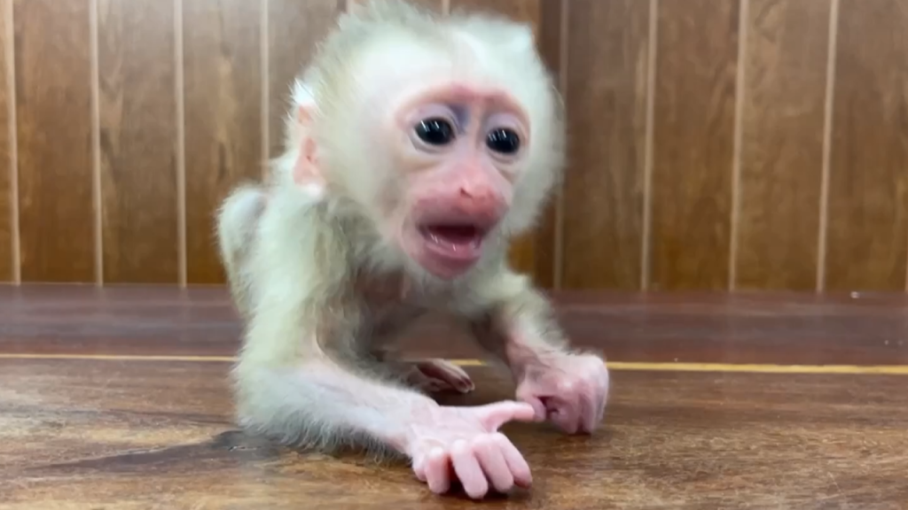 The newborn baby monkey lay trembling in the corner of the dusty ground, his tiny body barely strong enough to lift his head. His mother…