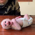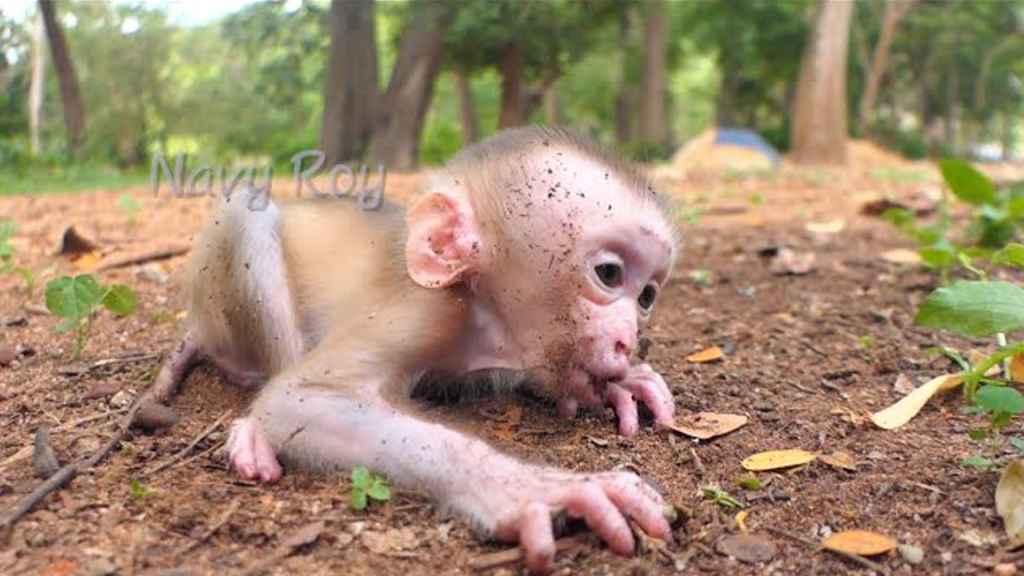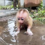 The poor baby monkey was found trembling beneath a tree, his tiny body covered in dirt and fear. His eyes were wide, filled with shock,…
