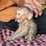 The newborn baby monkey was found lying helplessly on dry yellow grass, his tiny body barely moving under the harsh sunlight. His fur was dusty,…