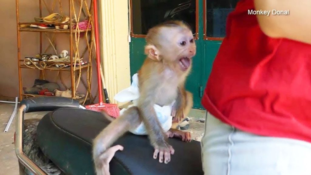 Baby monkey Donal clung tightly to Mom’s shirt the moment he saw the motorcycle. The engine wasn’t even running yet, but the strange smell and…