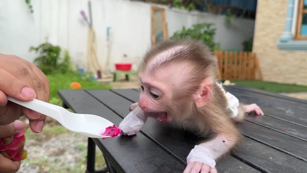Baby Monkey Mini climbed onto the edge of the flower pot, her tiny body tense with emotion she could not control. She had reached out…