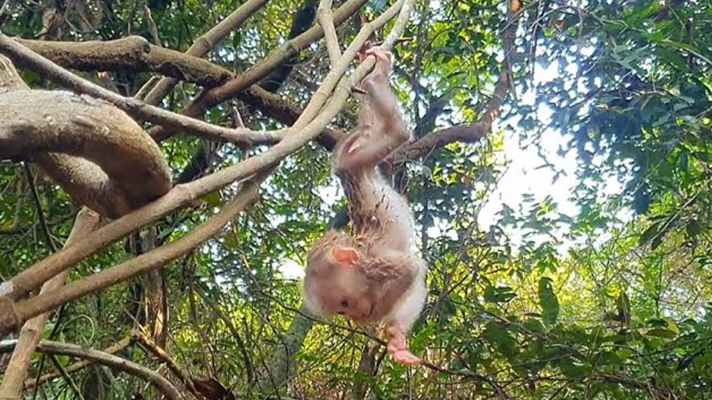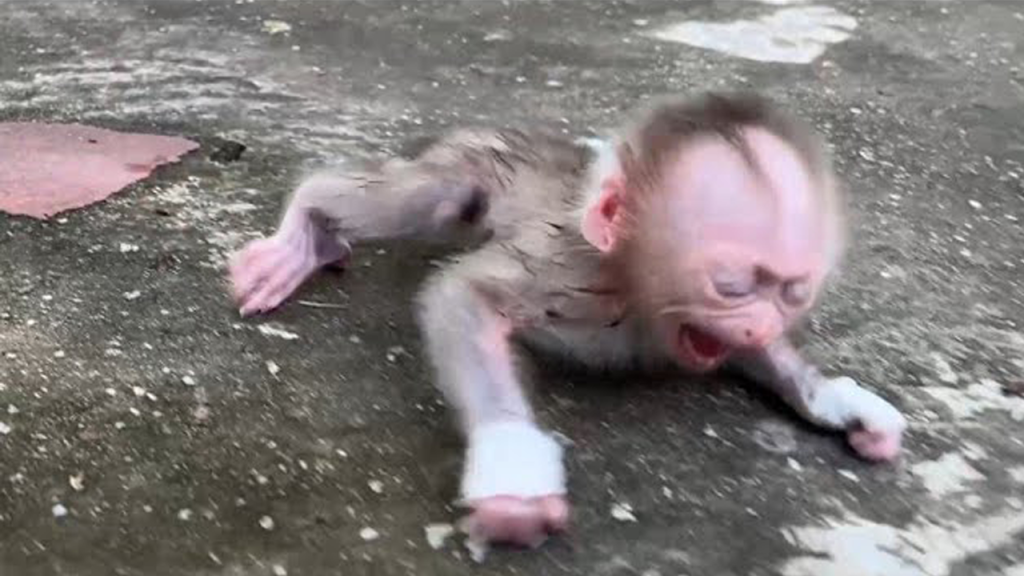 The moment the baby monkey woke up, the world felt wrong. Her eyes barely opened, still heavy with sleep, but her tiny stomach was already…