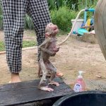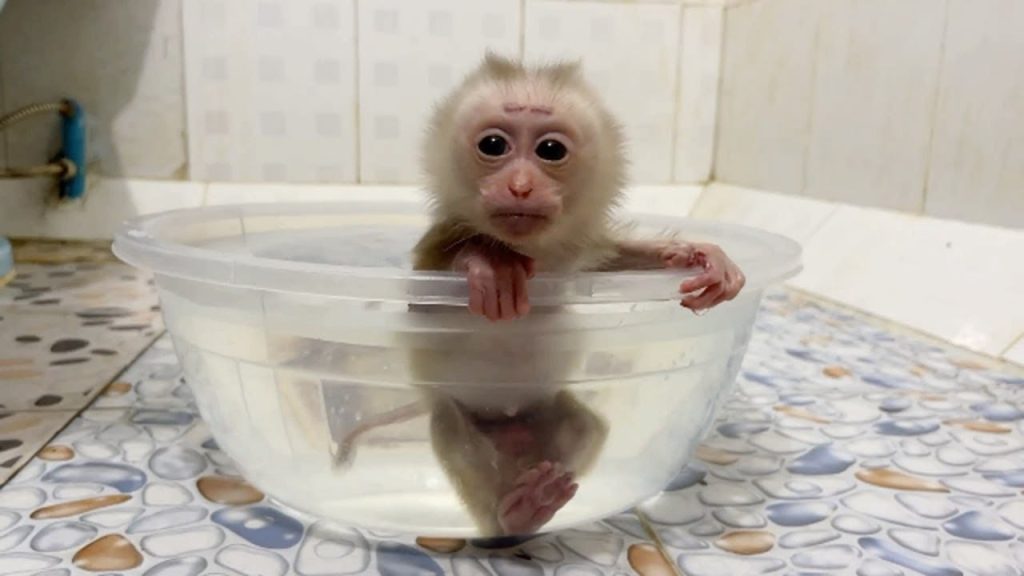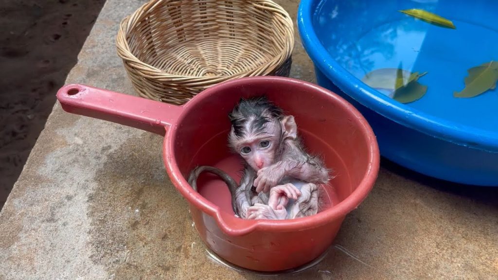 Baby monkey Jasmine shouted and cried loudly the moment mom tried to make her stand for bathing. Her small face tightened with fear and anger,…