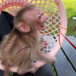 Baby monkey Linda sat happily for a moment, her pacifier tucked safely in her mouth, her body calm and relaxed. It was her little source…