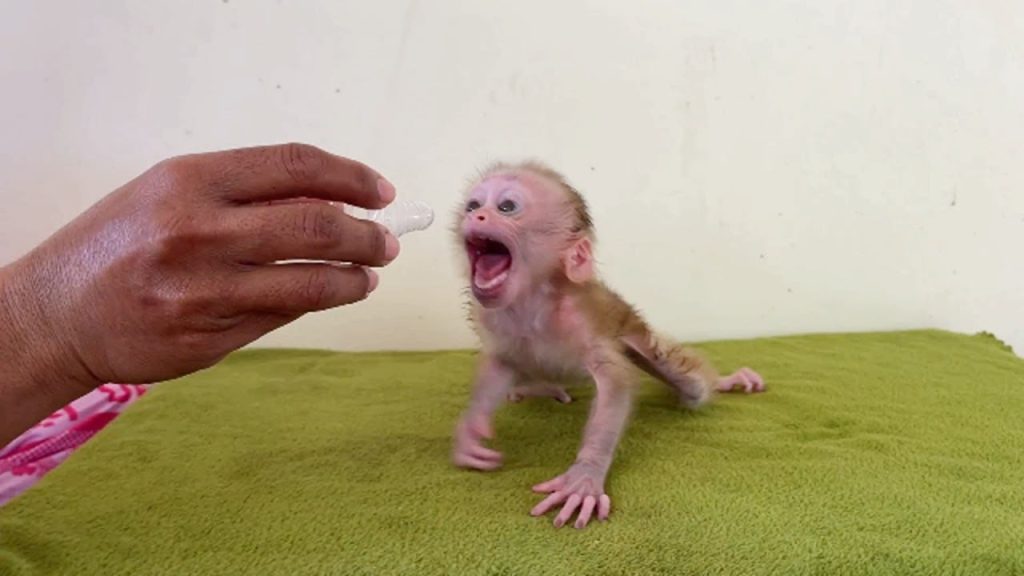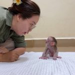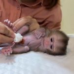 New mom sat quietly as she spoon fed warm porridge to her lil newborn baby monkey. The baby was so small, barely able to lift…
