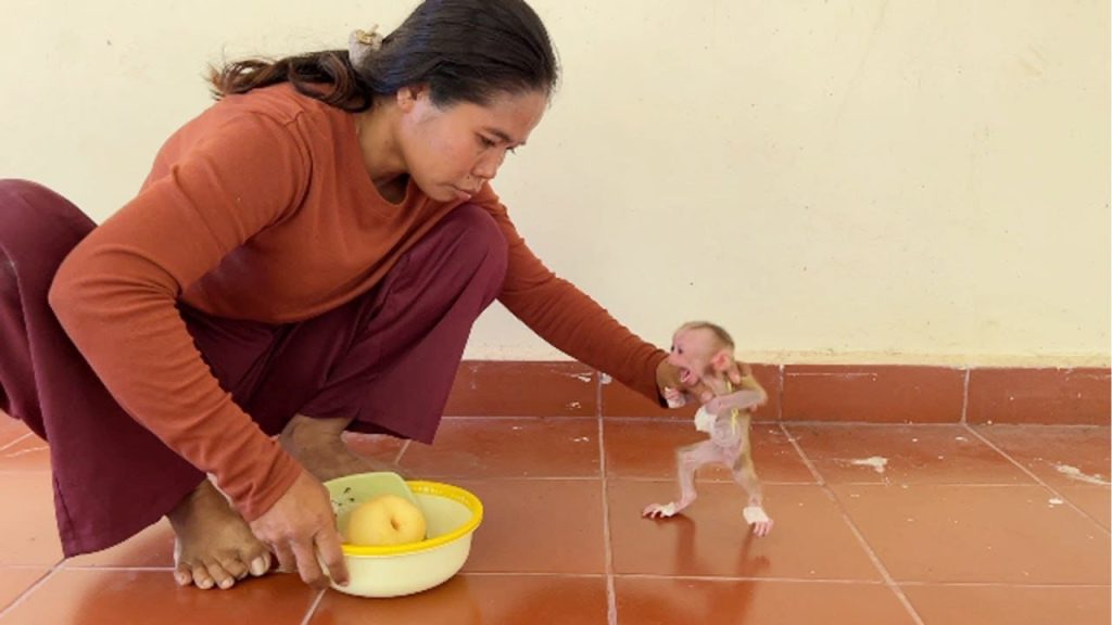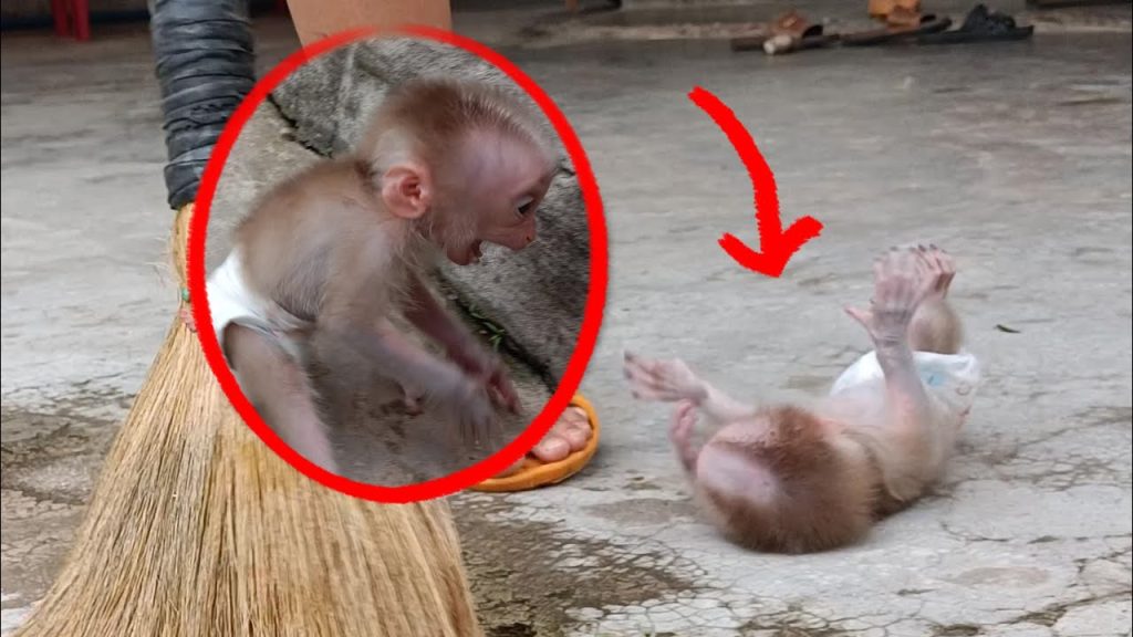 OMG, the small baby monkey could not wait even one more second. His tiny body shook with impatience, arms flailing, legs kicking against the floor…