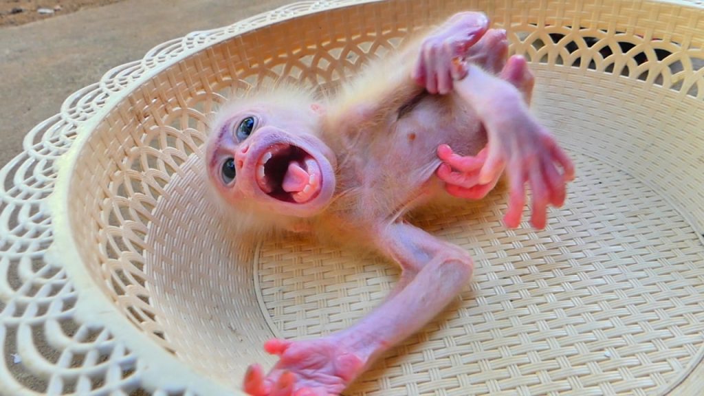 Baby Monkey Minea cried painfully, her voice thin and trembling as she curled her feet close to her chest. Her tiny toes had turned black,…