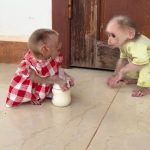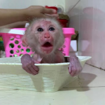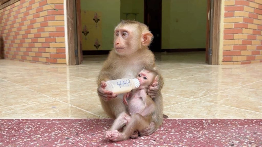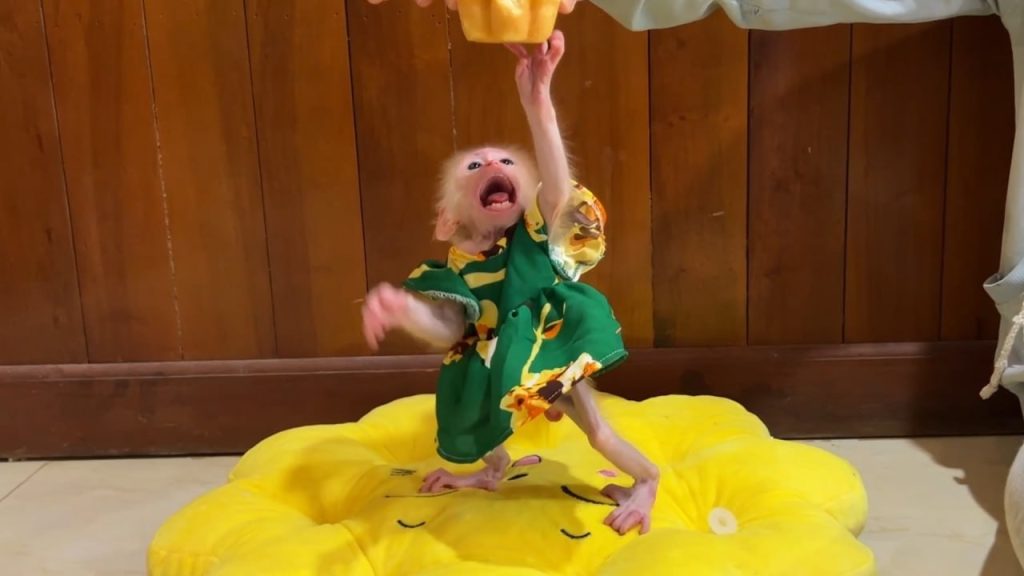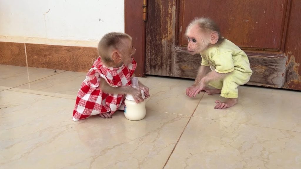 It was time for little Luna to drink her milk. Mom had prepared the bottle and gently tried to feed the naughty baby monkey. But…