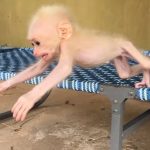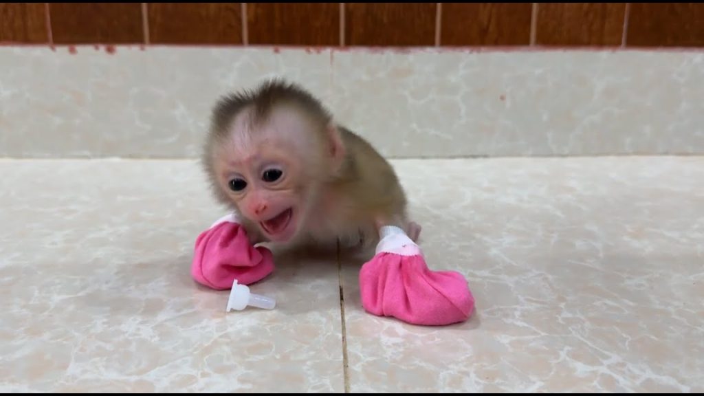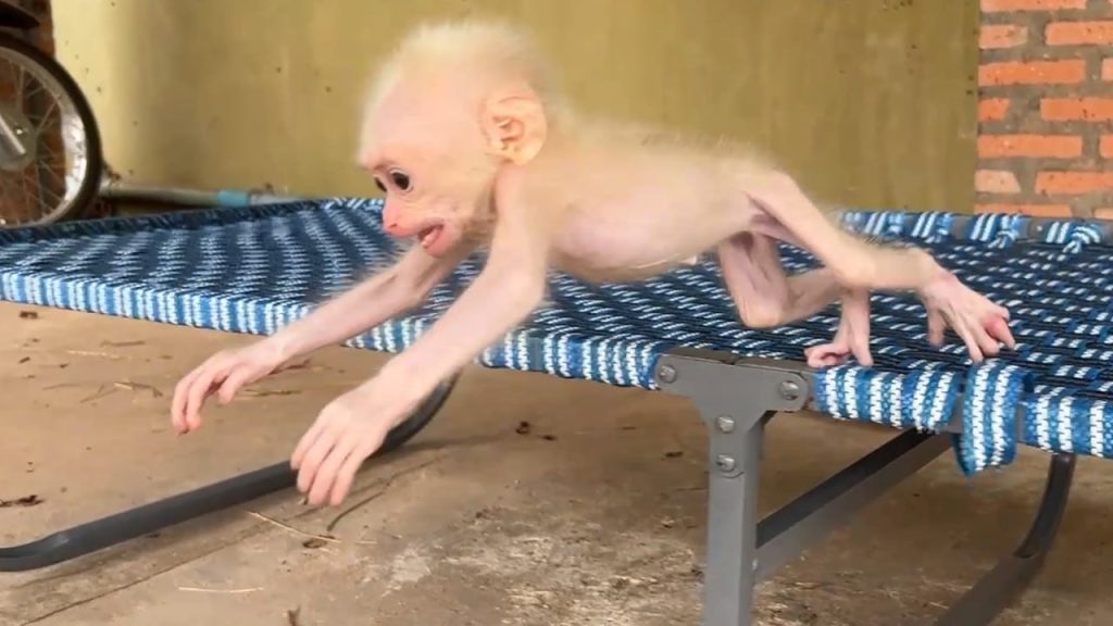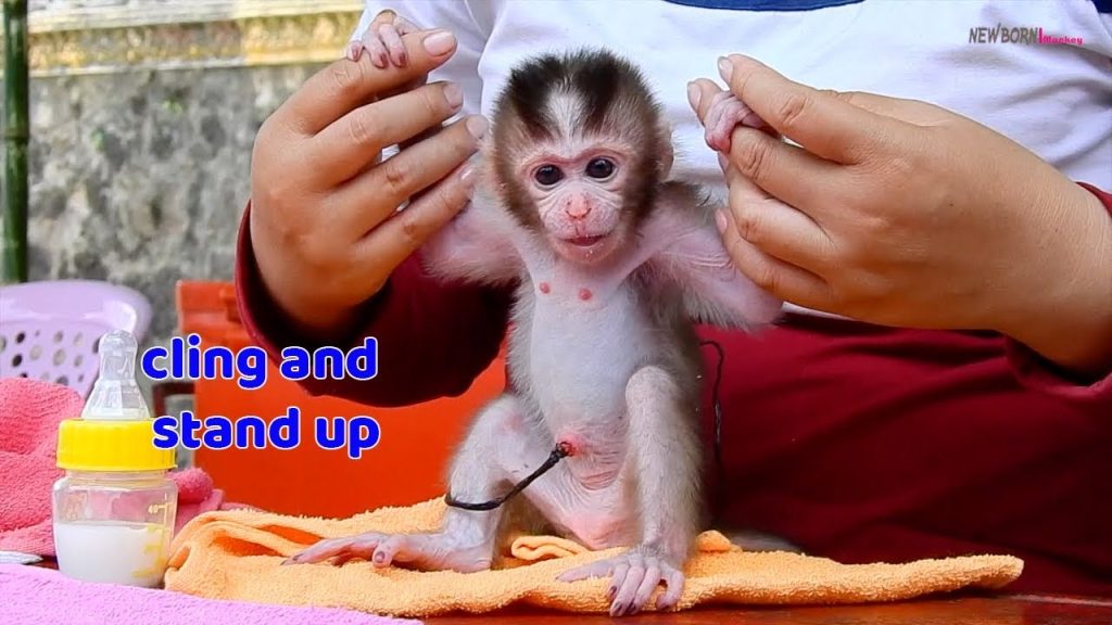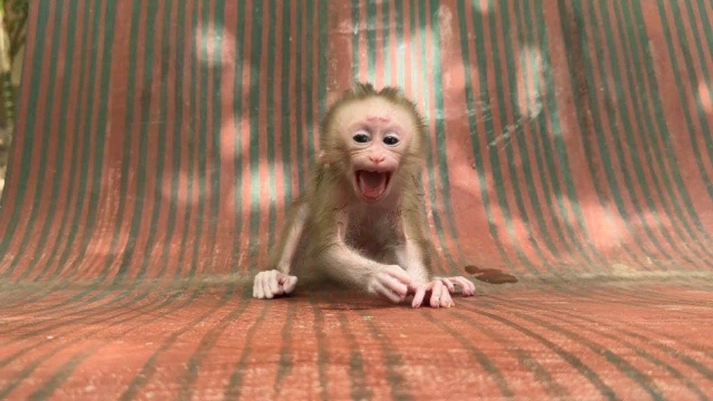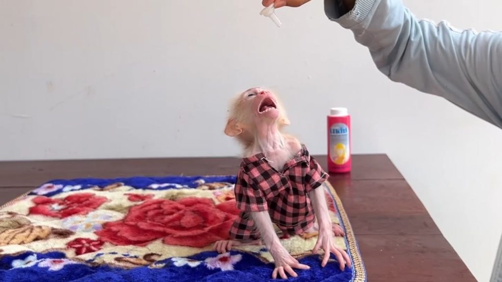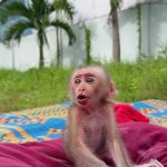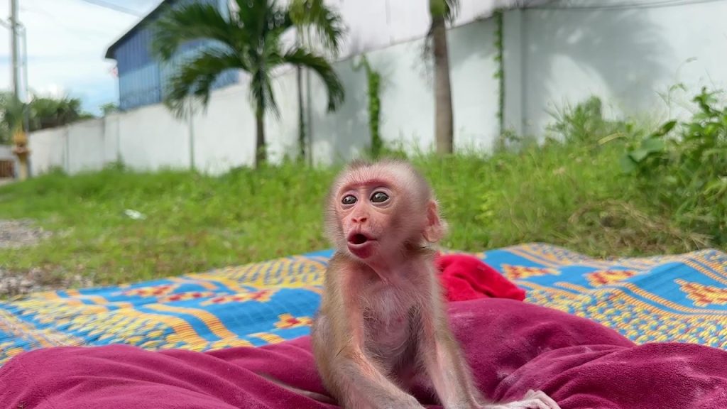 The tiny newborn baby monkey lay quietly on a soft cloth. His little body was so small and fragile, still adjusting to the new world…