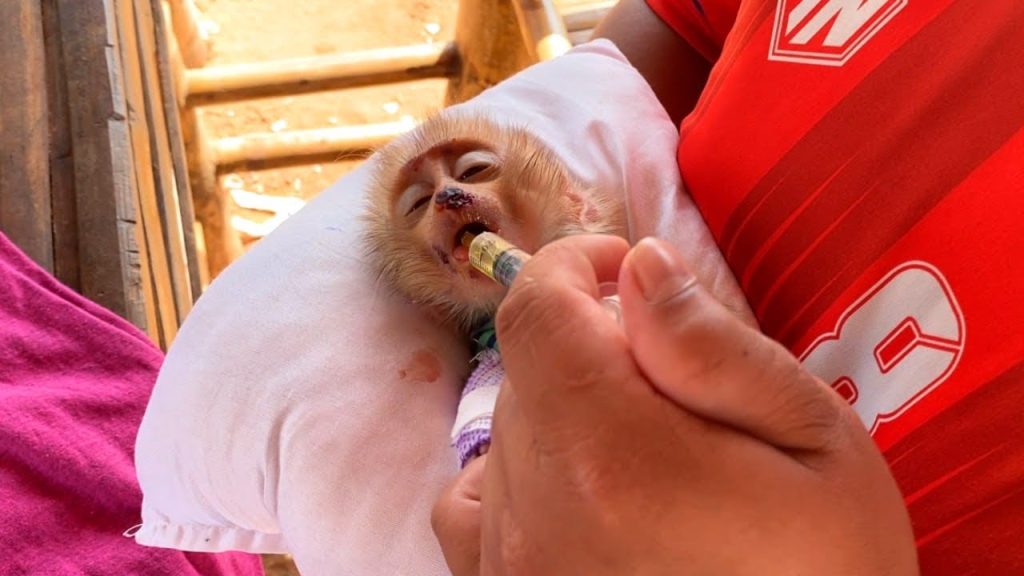 The tiny newborn monkey lay quietly, her small body looking weak and tired. She hadn’t been feeling well, and everyone in the room could see…