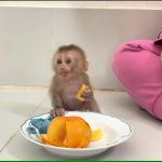 Morning had just begun, but little baby monkey Kasky was already in a very bad mood. Sitting on the table, his tiny face looked upset…