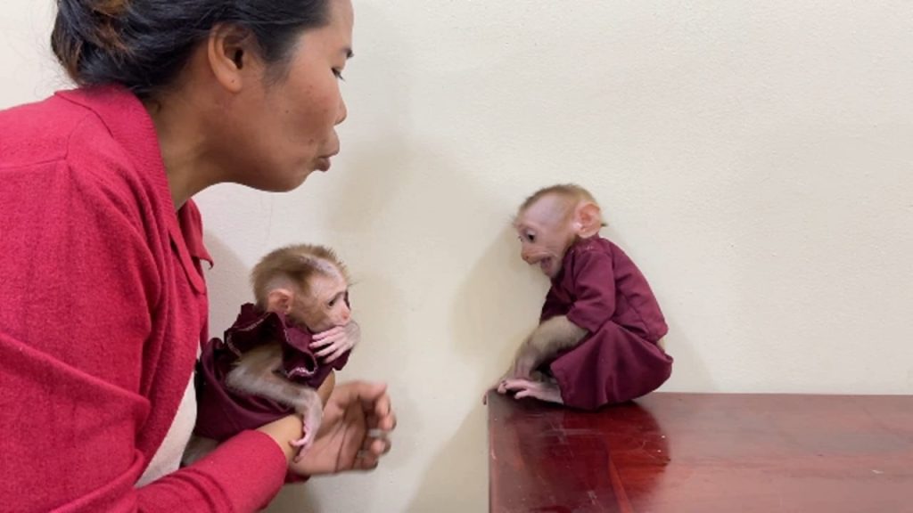 Little Minea and Yuri were sitting close together while Mom watched them with gentle eyes. The two baby monkeys looked calm and comfortable in the…