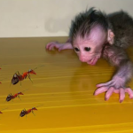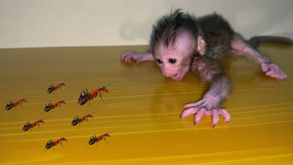 The tiny newborn baby monkey lay on the table, his small body full of big emotions. Everything felt overwhelming. Too bright. Too new. “Eee…!” A…