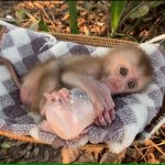 The room was quiet, filled with soft concern. Little baby monkey sat still, her tiny face looking so small and helpless as Mom carefully wrapped…