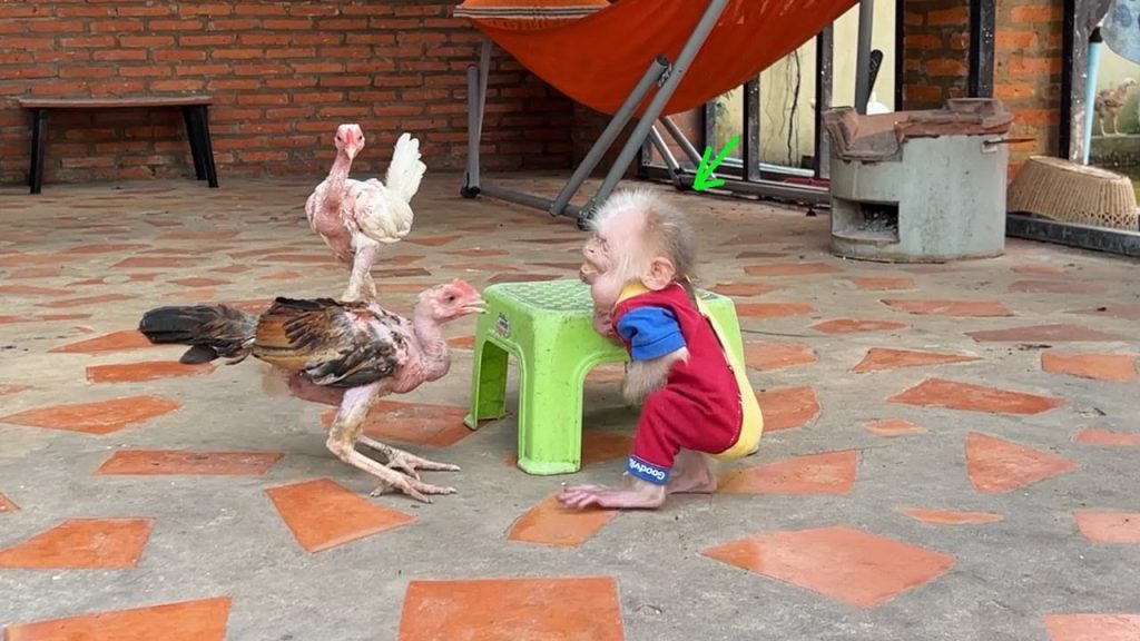 Little Chamroeun was enjoying his food peacefully. Small bites. Happy sounds. “Eee…” Everything was calm— Until suddenly— A chicken came too close! It moved toward…