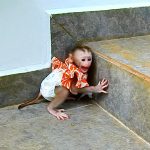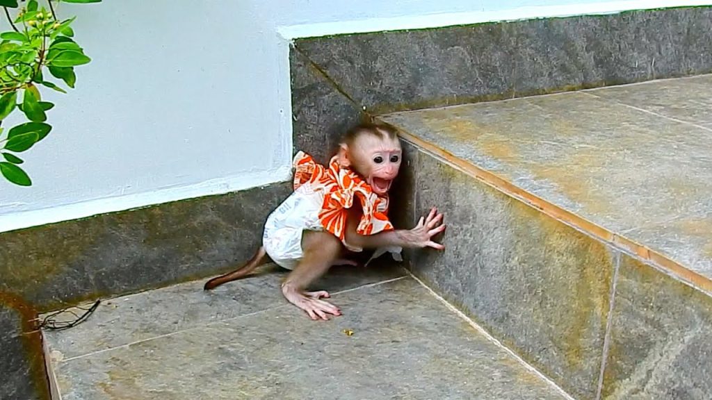 The baby monkey stood still, lifting her small face toward the trees as a loud shout burst from her mouth. The sound echoed, sharp and aching, filled with longing. She wasn’t calling for food. She wasn’t calling to play. She was calling for her mom—the one who used to answer from the wild. Her eyes searched every movement, every shadow, hoping for a familiar figure to appear.