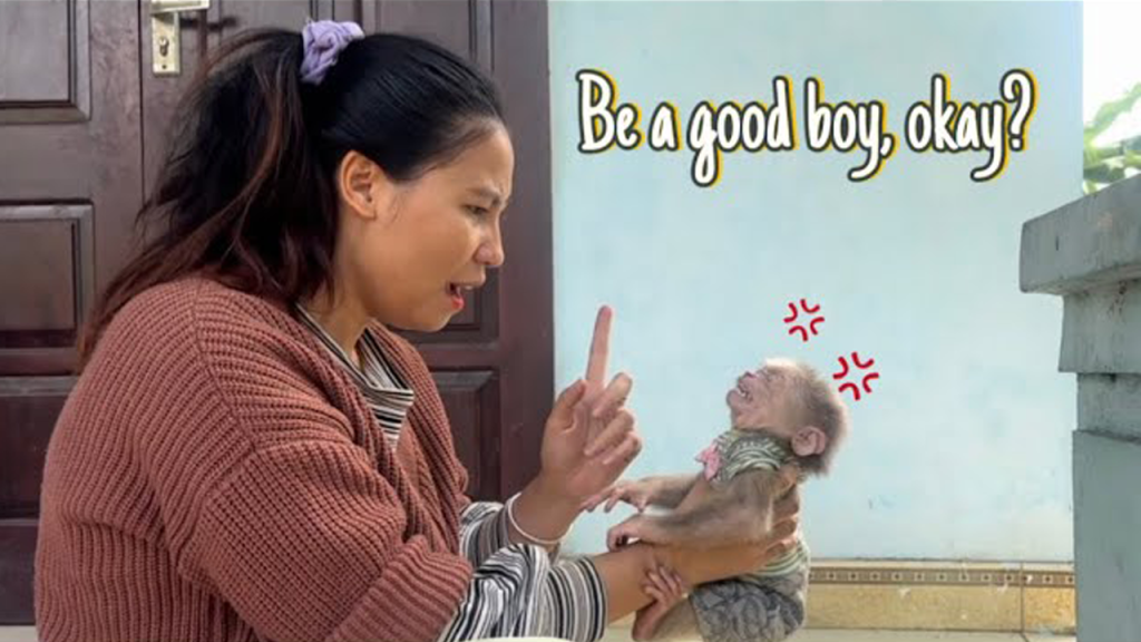The baby monkeys sat together, full of energy and attitude, clearly spoiled by too much attention and too little patience. When Mom tried to give gentle advice, they barely listened. Instead of calming down, they showed rude gestures—turning their faces away, stomping their feet, and making angry sounds as if Mom’s words meant nothing.