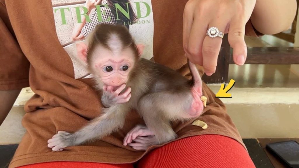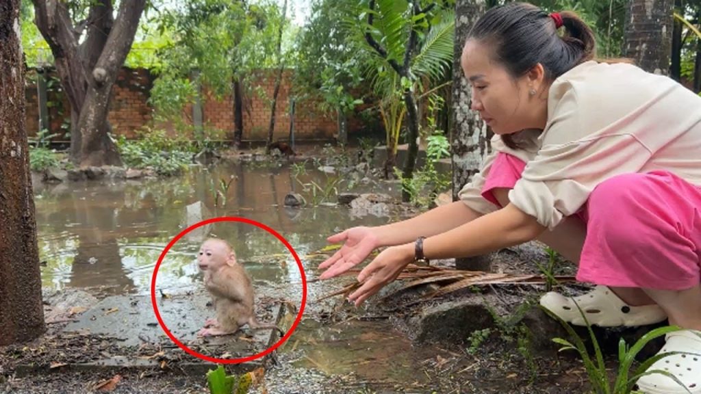 Jenny’s little heart pounded like thunder as she reached the edge of the floating wooden walkway. Beneath her, the water rippled dark and deep, every splash sounding like danger. Her tiny fingers grabbed Linda’s fur so tight it almost hurt, but Linda didn’t mind — she was the brave big sister today. With each shaking step, Jenny’s cries grew louder, her legs stiff like she couldn’t move on her own. The surface wobbled beneath them, and to a baby monkey, that felt like the whole world was about to sink.