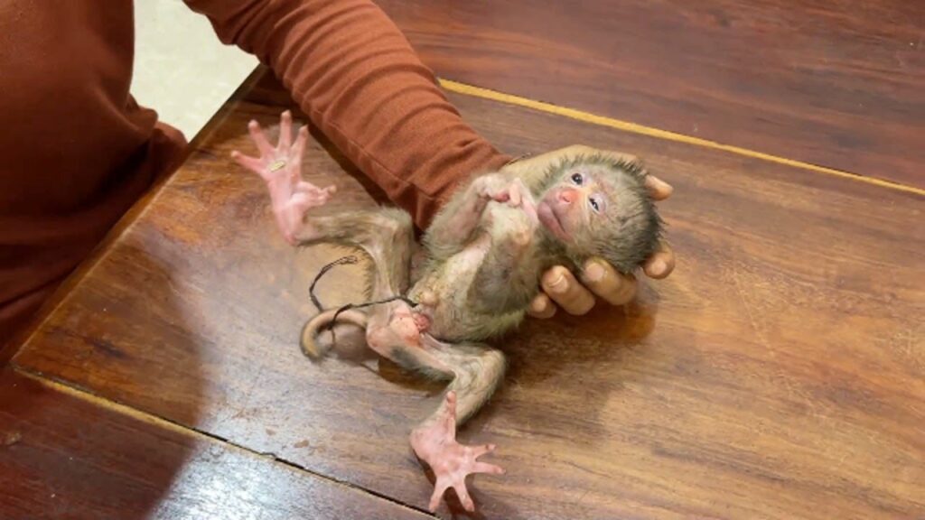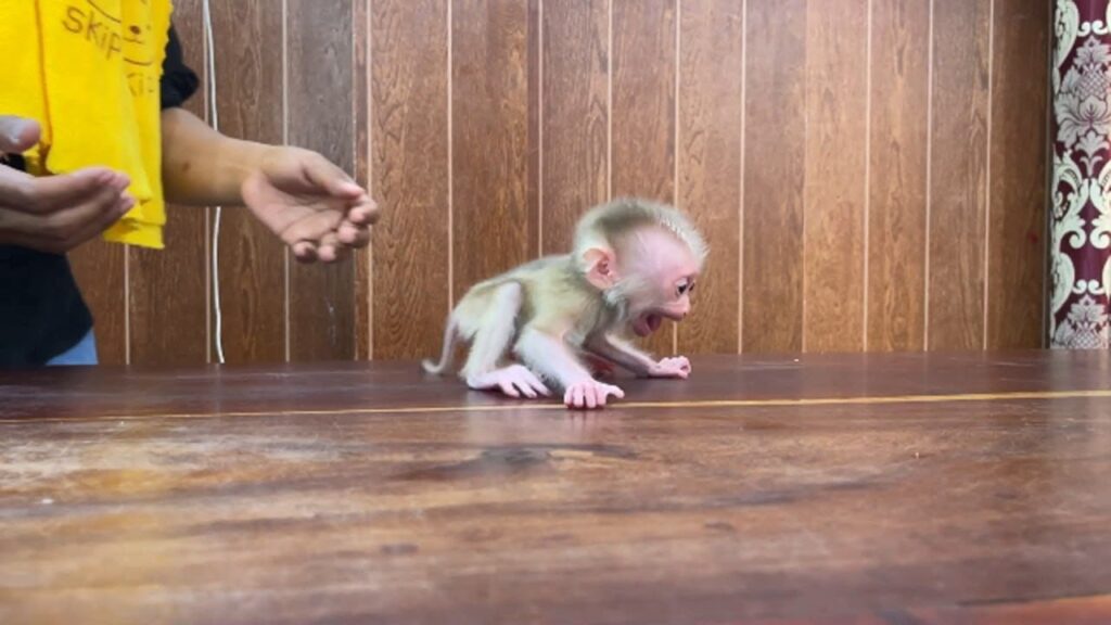Chamroeun has always been a good little monkey, and today he proved just how obedient he can be. Mom placed a small plate of food in front of him and gently told him to wait. Instead of rushing in or grabbing quickly, Chamroeun sat patiently, his tiny hands resting beside the plate, his big eyes fixed on the delicious food.