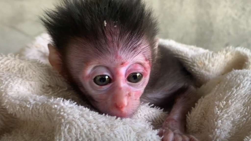 Baby Chimol was usually full of life — playful, curious, and always the first to climb onto her caretaker’s shoulder. But one morning, something changed. She lay quietly in her soft blanket, her little eyes dull and her movements weak. Red spots had begun to appear on her tiny body. The caretaker’s heart sank — Chimol had caught monkeypox, a painful illness for such a small, fragile baby.