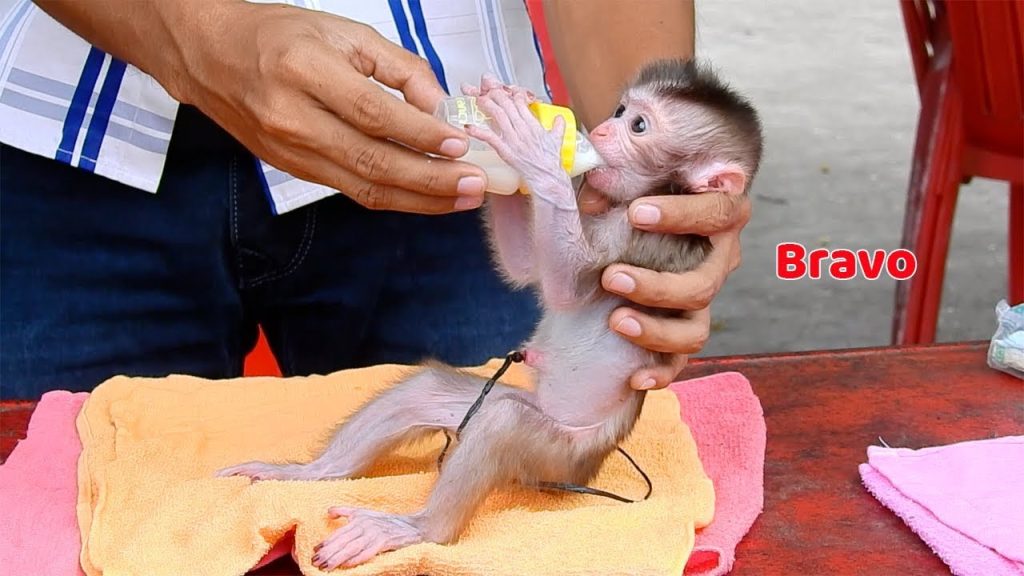 The gentle sound of running water filled the small bathroom as Mommy prepared a warm bath for little Minea, her tiny baby monkey. The evening was quiet, the soft glow of a light bulb making the room feel calm and cozy. Mommy tested the water temperature with her hand — just warm enough, not too hot.