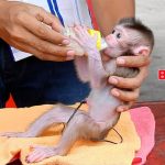 Mommy laughed too, her heart melting. She poured a small cup of warm water over Minea’s back, washing away the dirt and sweat. The baby monkey shivered a little, then leaned closer, enjoying the warmth. Mommy rubbed her fur gently with her fingers, making soft bubbles that floated on the surface.