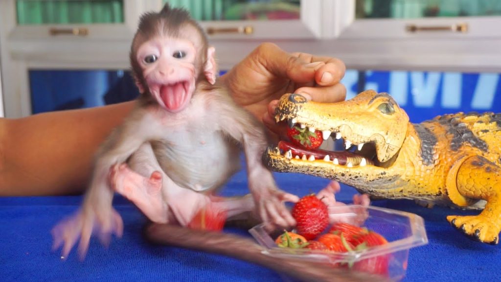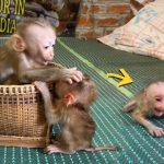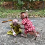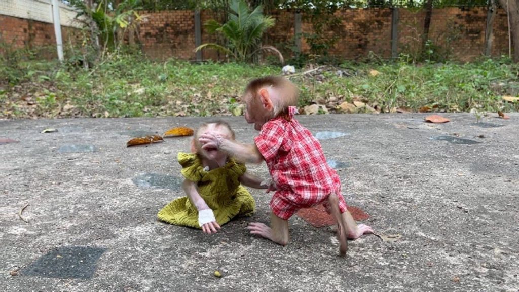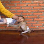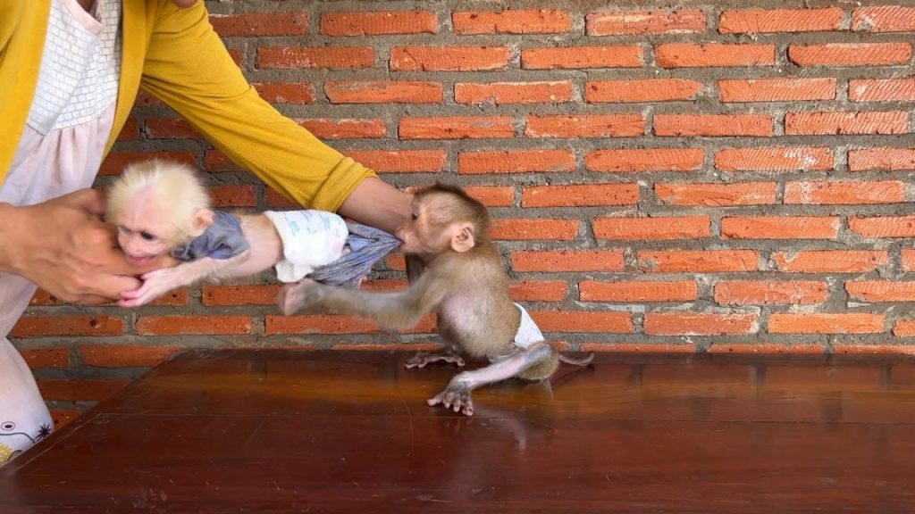 But Amo didn’t want to stop. He squeaked, looking up at her with wide, pleading eyes. When she tried again, firmer this time, he growled softly — a little monkey protest. His tiny brows furrowed, and his lips puckered stubbornly.