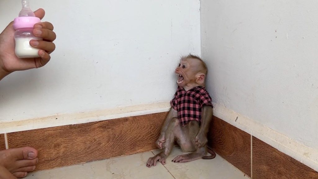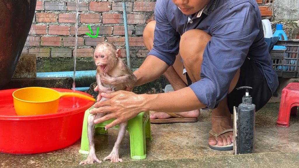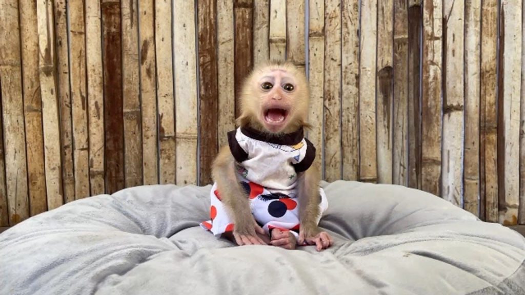 It was a bright morning in the yard, and baby monkey Yuri was in one of her fiery moods again. The sun was soft, the grass still wet from dew, and everything seemed peaceful — except for Yuri’s sharp little cries that echoed through the air.