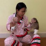 At just five days old, baby monkey Tourtour lies wrapped in a soft towel, his tiny body warm and cozy. His fur is still thin and silky, but already it carries a golden glow — a little like a tiger cub in the morning sun. Every movement he makes, every small sound from his mouth, shows a will to live that feels far bigger than his fragile size.