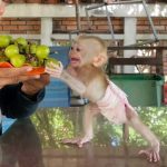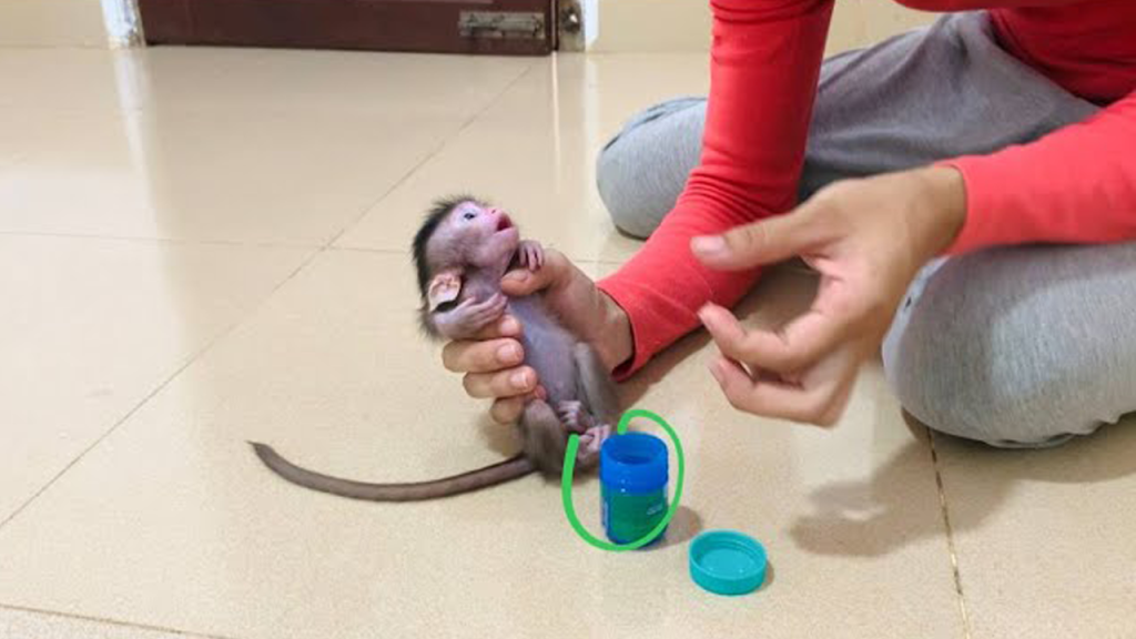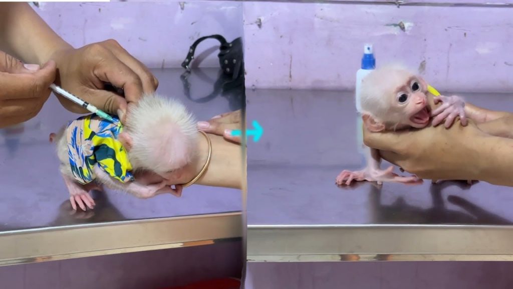 The morning began like any other, but something wasn’t right with baby monkey Minea. She sat quietly in Mom’s lap, her eyes filled with discomfort. Her tiny finger — once just a small scratch from playtime — had become red and swollen overnight. Mom noticed immediately, her heart tightening with worry.