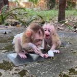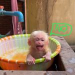 The baby monkey tried once more, pulling in a small, shaky sip.