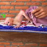 The moment Daddy gently placed the tiny baby monkey on the cool tiled floor, the world seemed to collapse around the little one. Just seconds…