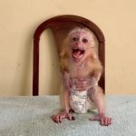 The poor baby monkey was found trembling beneath a tree, his tiny body covered in dirt and fear. His eyes were wide, filled with shock,…