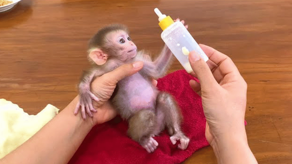 It was lunchtime at the little monkey yard, and Luna was enjoying her favorite snack — a juicy piece of banana mixed with milk. She…