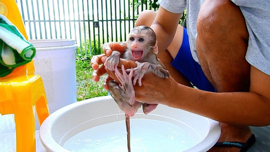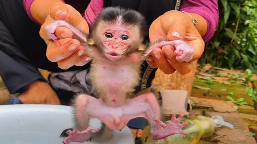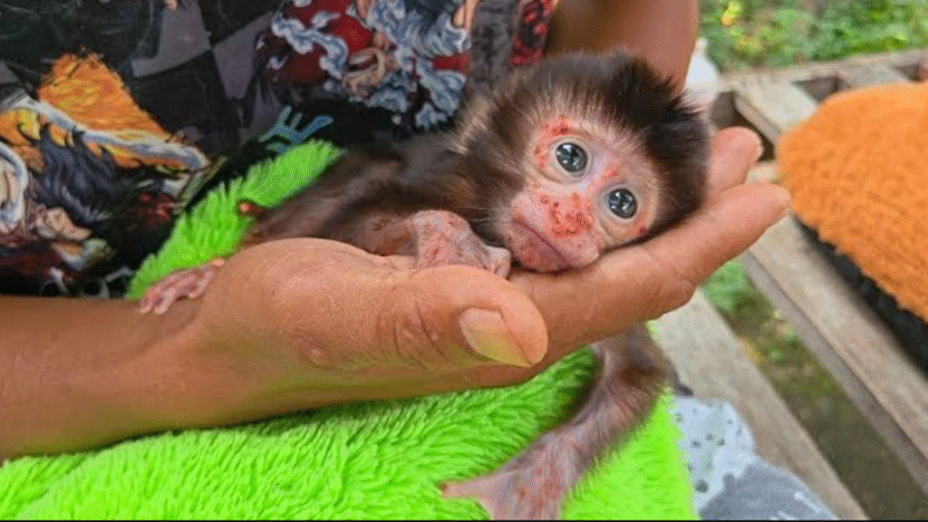 When rescuers first found the newborn baby monkey, she was trembling — tiny, dirty, and weak. Her fur was stuck together with mud, her little…