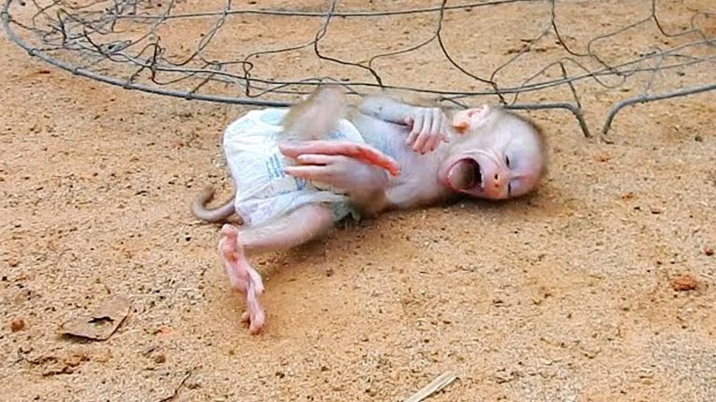 The tiny newborn monkey lay helpless in the rescuer’s gentle hands, his fragile body trembling like a leaf caught in the wind. His eyes, still…