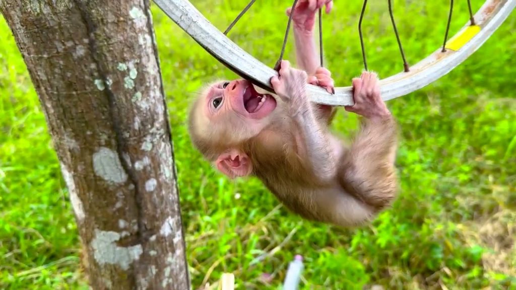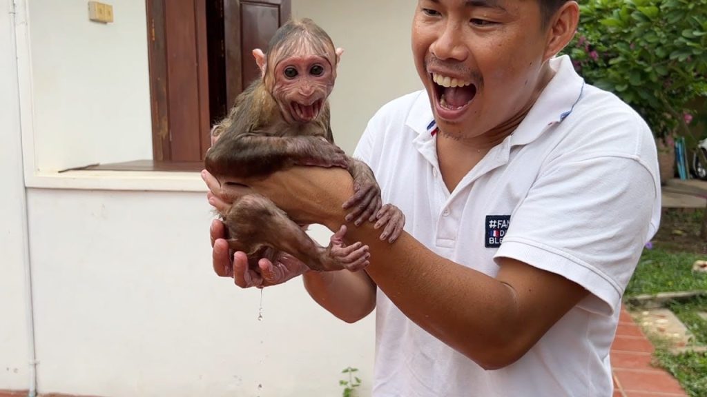 The golden afternoon sun glowed softly through the window as Daddy prepared the warm water for Minea’s bath. The little baby monkey sat nearby, curiously…