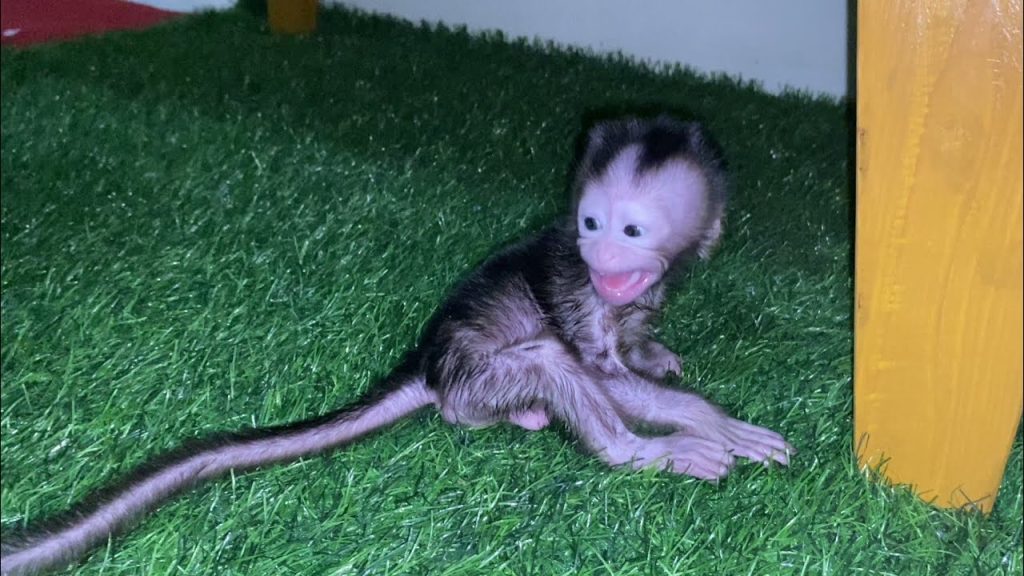 First Sip of Hope for a Weak Newborn Monkey