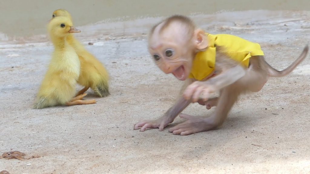 The peaceful morning at the rescue house suddenly turned into chaos when baby monkey Alan met the duck for the first time. The little monkey…