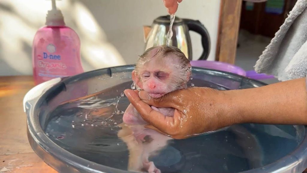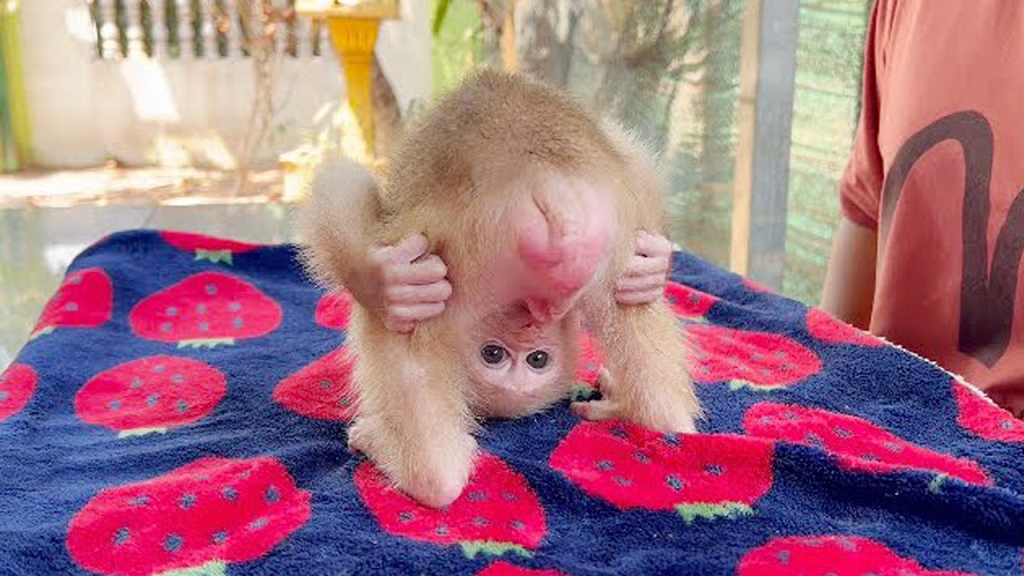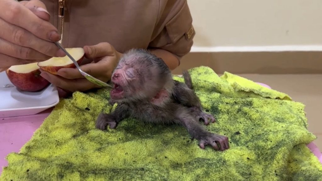 Poor Newborn Monkey Sanga Taking a Warm