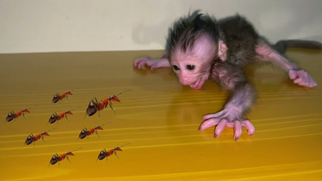 The sun had barely set, and tiny baby monkey Poby was already restless in Mom’s arms. His soft squeaks filled the room as he reached…
