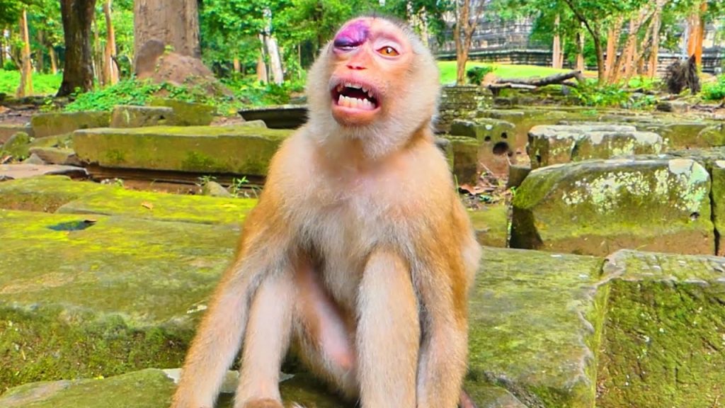 Under the soft shade of the afternoon sun, the little blue-eyed baby monkey sat quietly, her tiny hands resting in her lap. Normally, her eyes…