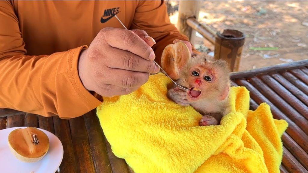 The tiny newborn monkey lay wrapped in a soft towel on the wooden table, his eyes still sleepy but his mouth ready for anything that…