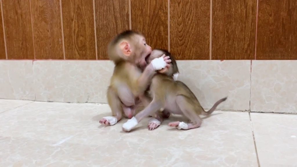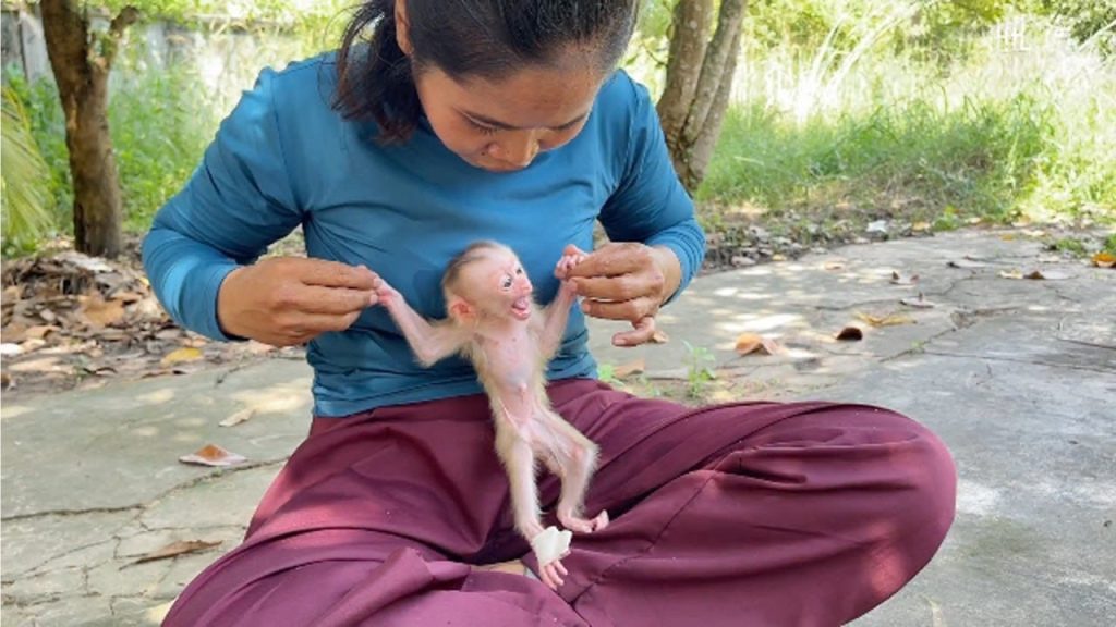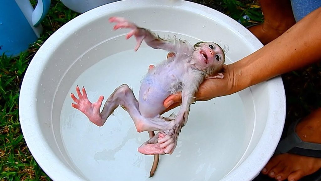 The tiny newborn baby monkey had just arrived in her new home—her first day after being adopted. She was so small that she could fit…