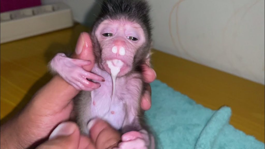 The newborn baby monkey was only a few days old, still learning how to drink milk and breathe at the same time. His body was…