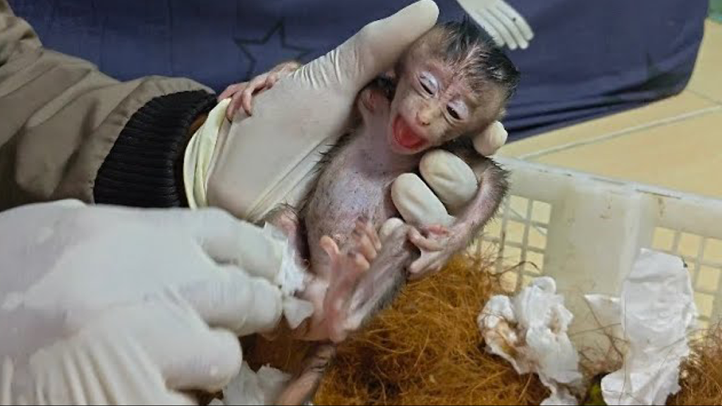 Newborn baby monkey Rith was still so fragile that his body could barely hold itself up. His fur was thin and soft, his eyes still…