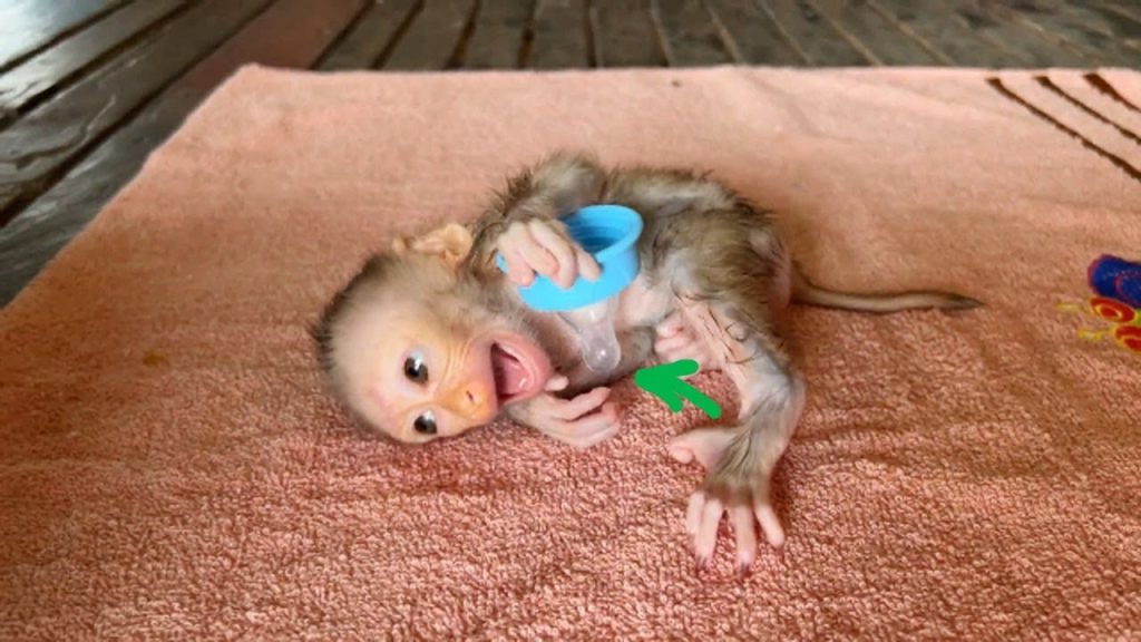 The moment the warm water touched the tiny baby monkey’s feet, he stiffened with warning. His eyes widened, his lips puckered, and before Mom could…