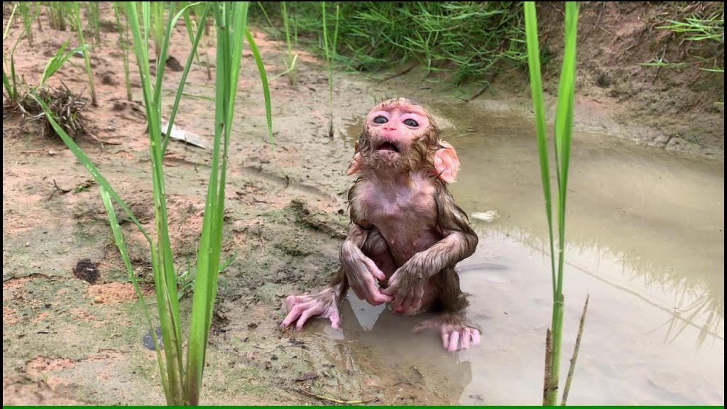 The poor baby monkey looked weak and helpless as he struggled to rise from the shallow water of the rice field. Mud clung to his…