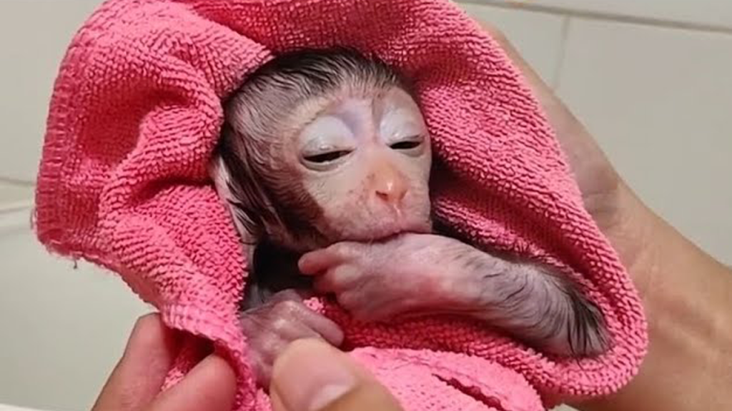 The newborn baby monkey girl was so small that her entire body fit easily in mom’s gentle hands. Her fur was thin, her movements slow,…